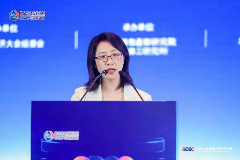 图为中国信息通信研究院泰尔终端实验室数字安全研究部主任蒋阿芳演讲现场
