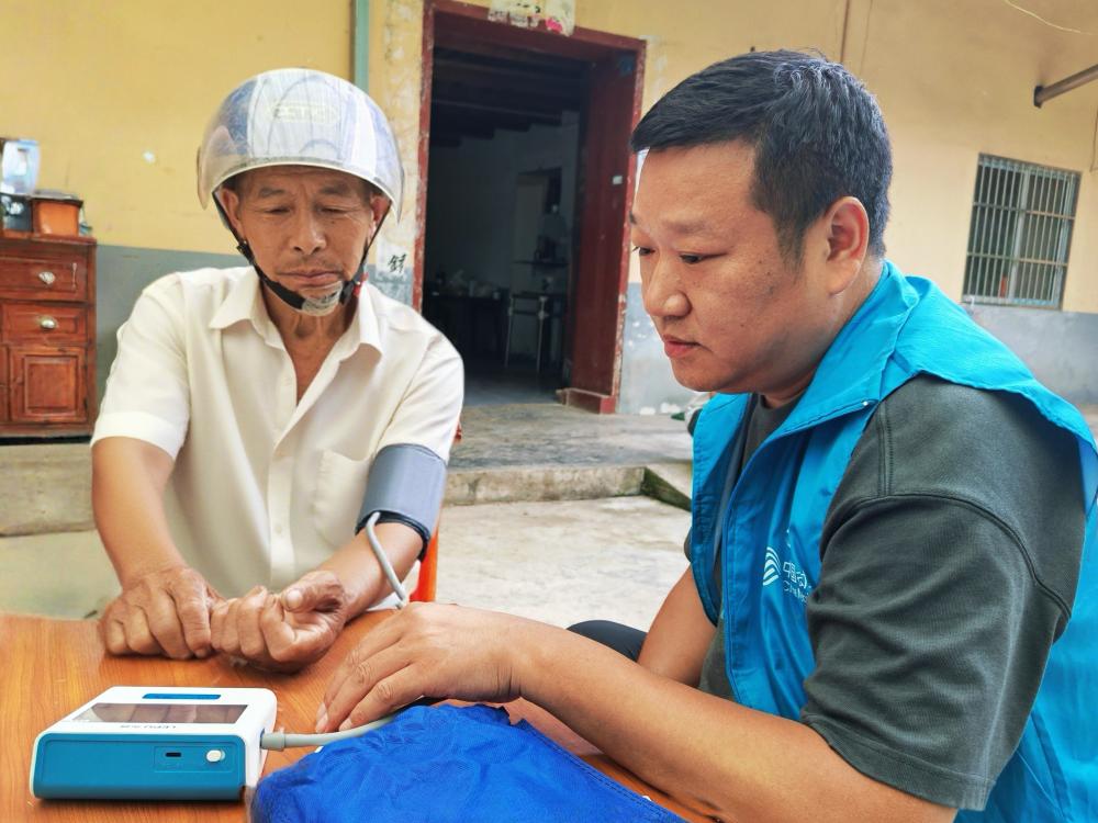 “以前量个血压,我得拄着拐杖在山路上走一个多小时,夏天炎热,我这把老骨头哪里扛得住啊!现在可好了,再也不用为这事犯愁了。”湖北省宜昌市五峰县牛庄村,杜爹爹紧握着刚安装好的智能血压计,眼眶泛起了红。