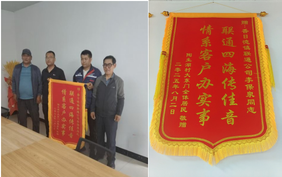 2025年9月,陶生湖村村委书记领着几位牧民代表,捧着一面红绸锦旗专程找到李保泉。锦旗上“联通四海传佳音,情系客户办实事”的烫金大字,在阳光下格外耀眼。书记紧紧攥着他的手,嗓门洪亮又带着激动:“保泉啊!以前咱这地方,打个电话得满山跑,想跟娃视频、查个养牛羊的法子都没门儿,跟外头就像隔了座山!现在好了,网通了,娃的笑脸能随时看见,卖牛羊也能在网上吆喝了。你这是给咱牧民架了座‘连外头’的桥啊!” 李保泉把这面锦旗挂在办公室的墙上,每次出工前看一眼,就觉得浑身充满了干劲。