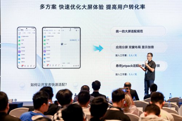 为提升折叠屏用户的使用体验,MagicOS 10 围绕头部应用,联合开发者持续打造展开态创新场景,共建折叠屏生态最佳体验。MagicOS 折叠屏软件架构师现场介绍到:" 我们通过统一的大屏适配规范,以及应用分屏、双窗布局、显示加倍、悬停能力的开放,帮助开发者以极低投入实现界面布局的快速优化。" 同时,荣耀提供丰富的设备姿态识别能力接口,目前已面向 40 余款应用完成了创新体验的提升。值得一提的是,荣耀远航计划也同步推出折叠视界激励,鼓励应用生态伙伴积极进行折叠屏深度适配,持续推动折叠屏生态走向成熟与完善。