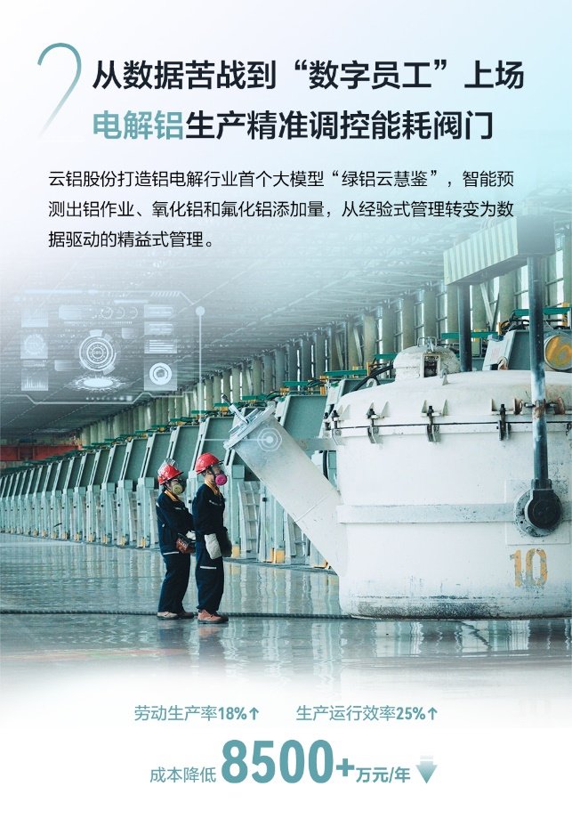 铝电解生产中,人工干预多、数据采集难、机理模型精度低是困扰整个行业的老问题。云铝股份基于坤安研发的“绿铝云慧鉴”,是铝电解行业首个大模型,目前已实现出铝作业、氧化铝和氟化铝添加量的智能化预测、自动化调度,大幅提高了生产流程的安全性、连贯性和稳定性。据测算,该模型在云铝文山500千安电解系列上推广应用后,每年可为企业降本8500余万元。