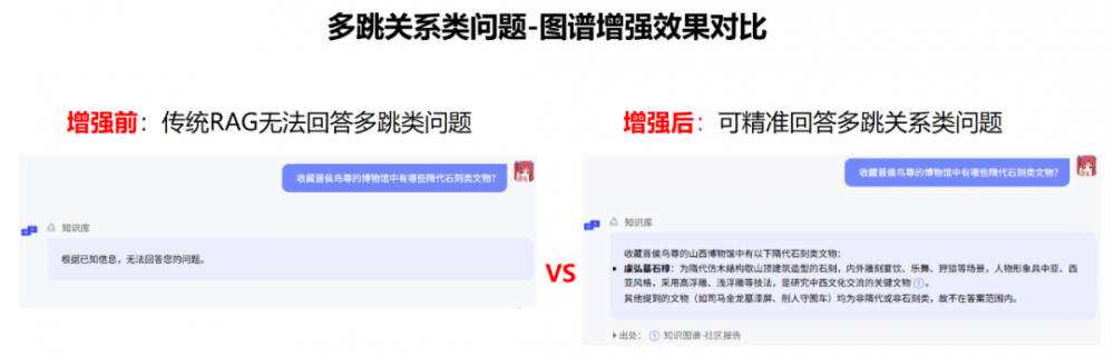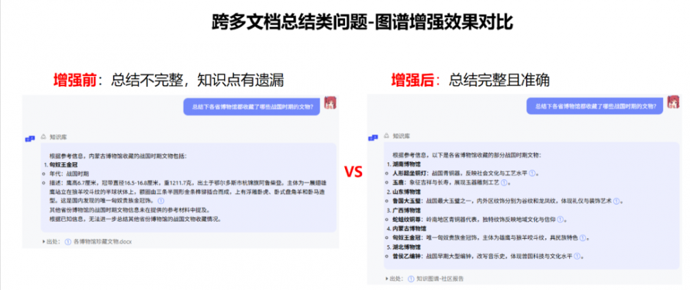 第三步:构建图检索增强的知识问答助手。基于已有的知识图谱、社区报告构建问答助手,针对跨多文档总结与多跳关系推理等复杂任务场景有显著的性能提升。