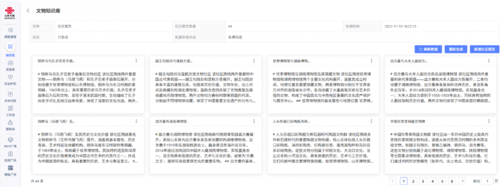 图谱构建完成后,可选择性生成社区报告,基于图谱中的实体关系进行多维度归纳,生成对大模型友好的知识增强描述。
