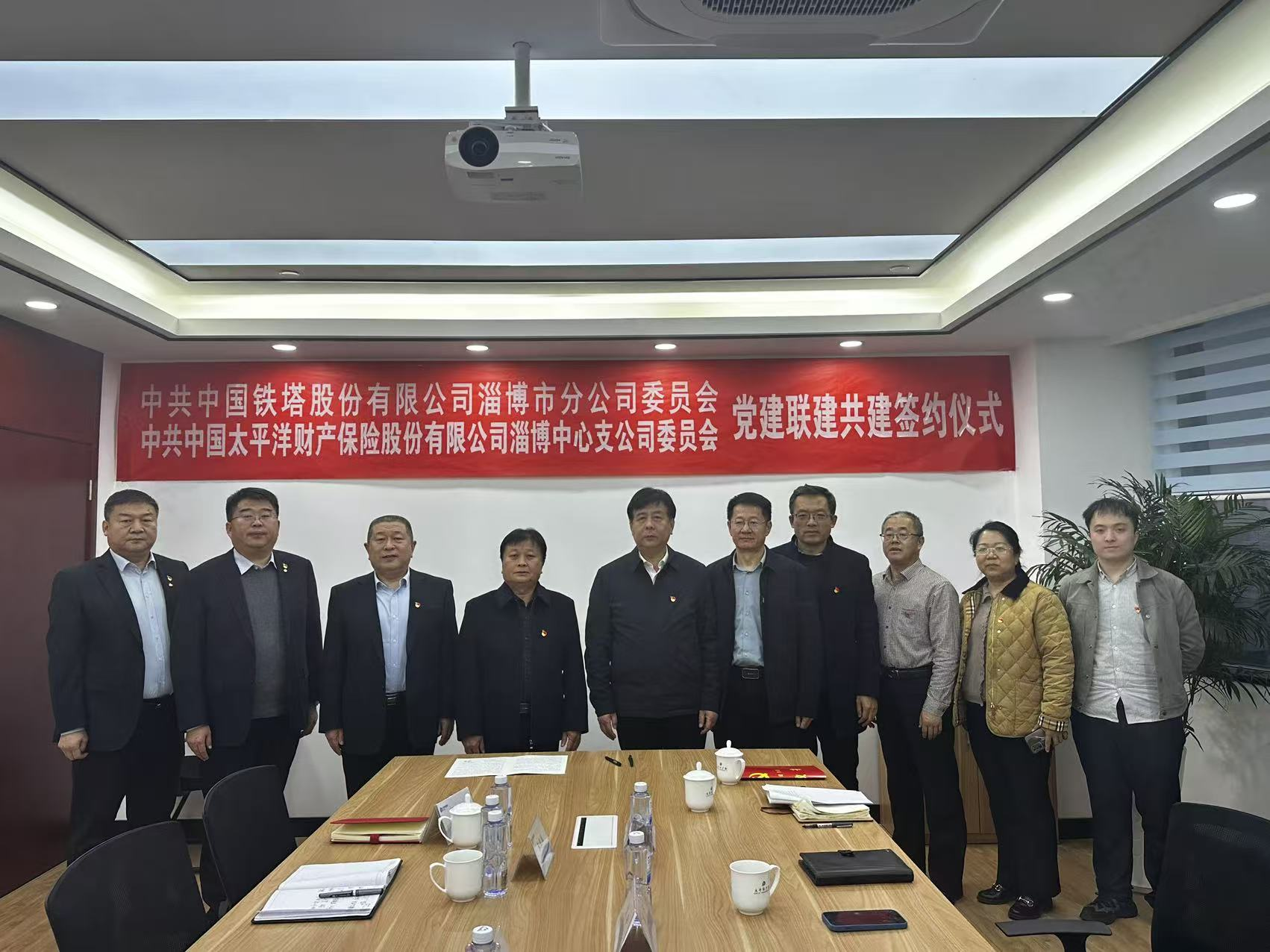 近日,中国铁塔股份有限公司淄博市分公司与中国太平洋财产保险股份有限公司淄博中心支公司举行党建共建签约仪式,标志着双方合作进入党建引领、深度融合的新阶段。中国铁塔淄博分公司党委书记李哲、太保财险淄博中支党委书记黄诗江等双方代表出席签约仪式。