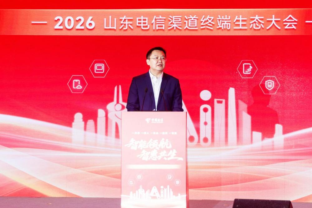 1月16日,以“智能领航,智惠共生”为主题的2026中国电信山东公司(以下简称“山东电信”)渠道终端生态大会在济南成功举办。本次大会上,山东电信与集团各专业公司、线上线下渠道合作伙伴及终端厂家代表等300余位嘉宾齐聚一堂,立足数字化转型浪潮,聚焦渠道赋能和生态共建,齐心擘画新一年山东通信行业渠道终端生态高质量发展的新蓝图。中国电信集团公司全渠道运营中心党委副书记、副总经理徐岩和天翼电信终端公司副总经理桂烜到会做了专题致辞,对大会的成功举办表示了祝贺,并对山东电信渠道终端生态运营给予充分肯定,提出殷切的期望。