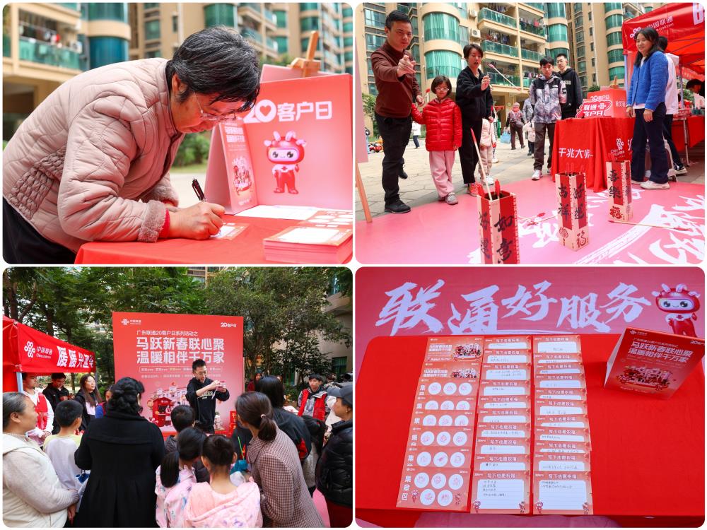 便民服务守初心,温情相伴年味浓。深圳联通工作人员坚守服务一线,以“零距离”热情与专业素养,为周边居民带来一站式通信便民服务。现场体验全屋千兆网络的极速流畅,感受智能家居生态赋予生活的便捷与安心;专业“网络管家”团队免费提供宽带测速、信号诊断等网络“义诊”,精准排查家庭网络难题、排忧解难;业务专家面对面答疑,细致解答各类通信业务疑问,让居民在家门口就能享受高效、贴心的专属服务。现场还有春联义写专区,书法老师现场挥毫泼墨,免费创作春联与福字,一笔一画承载新春祝福,红纸墨香传递浓浓年意,以实用服务与暖心礼遇,联通美好生活,共迎祥瑞新春。“手写的春联更有年味!”居民王先生捧着刚写好的春联开心地说道。