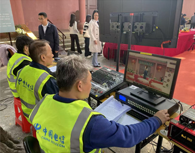 跨海峡高清视频连线,通信保障是核心关键。为确保活动音视频传输全程畅通、画面清晰、无延时无卡顿,中国电信汕头分公司将此次保障任务列为重点工作,第一时间组建由智能业务交付运营中心云视讯保障团队为核心的专项保障队伍,提前启动全流程保障工作。筹备阶段,保障团队赶赴南澳总兵府开展现场勘查,精准规划视频链路搭建方案,完成全套设备安装与调试;针对跨海峡连线的网络特性,开展多轮场景模拟测试,反复优化保障方案,逐一排查并消除各类网络隐患,为活动顺利举办筑牢技术基础。