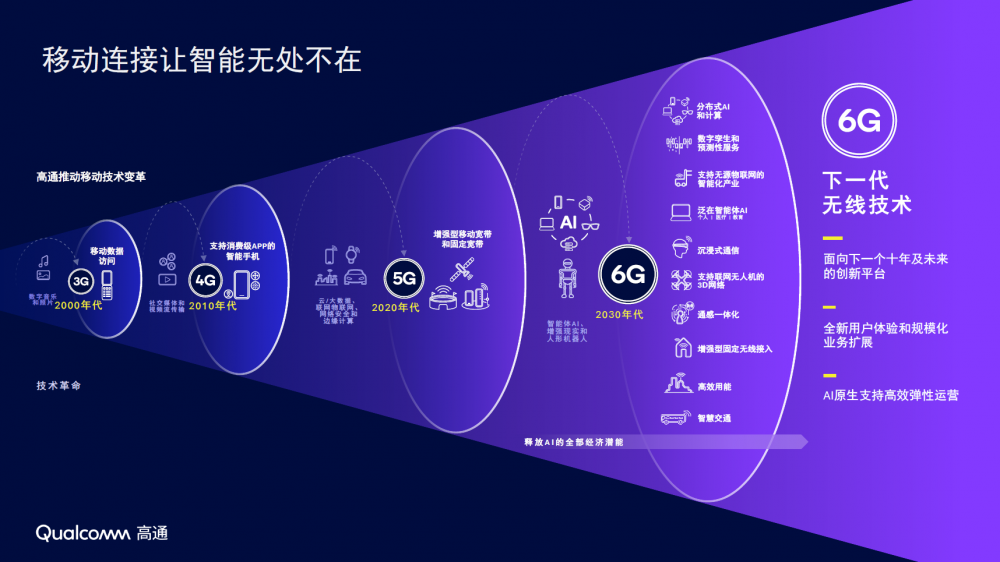 这种跨越数十年的技术连续性,使其在面对 6G 这一高度系统化、AI 原生的新一代通信体系时,具备从底层架构到规模化部署的完整视角。也正因如此,当产业目光转向 6G,人们自然会将期待再次投向高通。如今,随着 6G 融合原生 AI、拓展频谱资源、迈向更高性能与更广泛感知能力,通信技术正被赋予连接物理世界与数字智能的新使命。基于四十余年积累的深厚技术底座,高通在 6G 领域的技术进展,也正成为产业持续关注的重要参考。