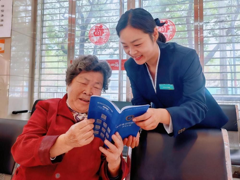 (在中国移动营业厅内,工作人员细心地为老人讲解反诈知识)