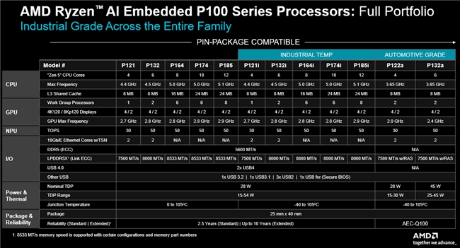 目前,来自全球原始设计制造商(ODM)合作伙伴、基于 AMD 锐龙 AI 嵌入式 P100 处理器的量产解决方案现已可供选用,合作伙伴包括研华科技(Advantech)、康佳特(congatec) 和控创(Kontron)。