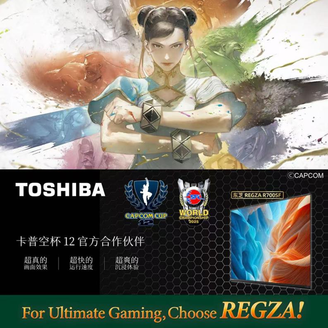 近日,东芝REGZA电视正式宣布成为CAPCOM CUP 12(第十二届卡普空杯)的官方合作伙伴,与全球格斗游戏顶级IP《街头霸王》共同点燃这场席卷全球的电竞盛宴。这不仅是品牌与赛事的强强联合,更是东芝REGZA以旗舰影音实力向全球千万玩家发出的郑重承诺——为每一位追求极致竞技体验的玩家,打造真正专业的对战装备。