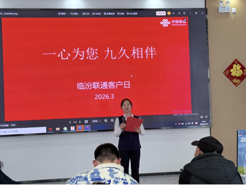 近日,临汾联通在全市范围内同步开展联通客户日活动。本次活动以“暖心服务为民生”为主题,聚焦智慧家庭产品体验与网络安全知识普及,邀请广大用户走进营业厅,感受联通数字生活的创新成果,提升防范通信诈骗的意识与能力。