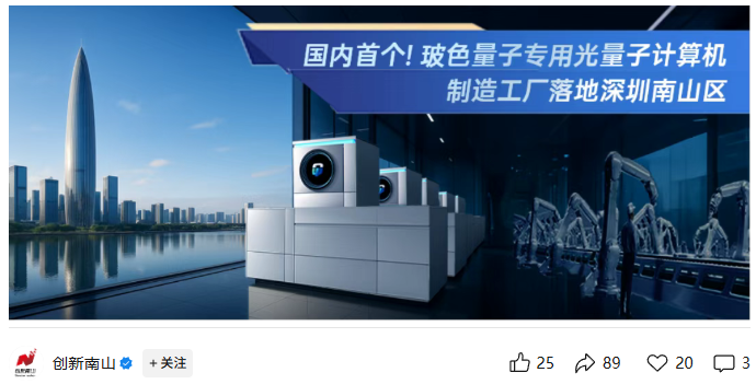 据创新南山,国内量子计算领军企业 —— 北京玻色量子科技有限公司(IT之家以下简称“玻色量子”)自建的“专用光量子计算机制造工厂”近日正式落地深圳南山智城。
