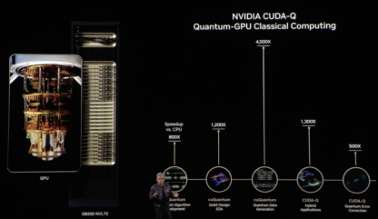 “将量子计算机直接连接到GPU超级计算机至关重要。”英伟达CEO黄仁勋在GTC大会上发表主题演讲表示,“正确的算法运行在GPU上,正确的算法运行在QPU上;两个处理器,两台计算机并肩工作。这就是量子计算的未来。”