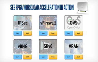 包括 uCPE/SD-WAN解决方案、边缘计算开源软件栈、N3000 FPGA加速卡网络虚拟化加速应用案例、5G 开放平台小基站 - 接入单元 & 远端单元、OTII 边缘整体解决方案和业务感知的用户面加速(UPF),共计六个网络转型的相关展示。