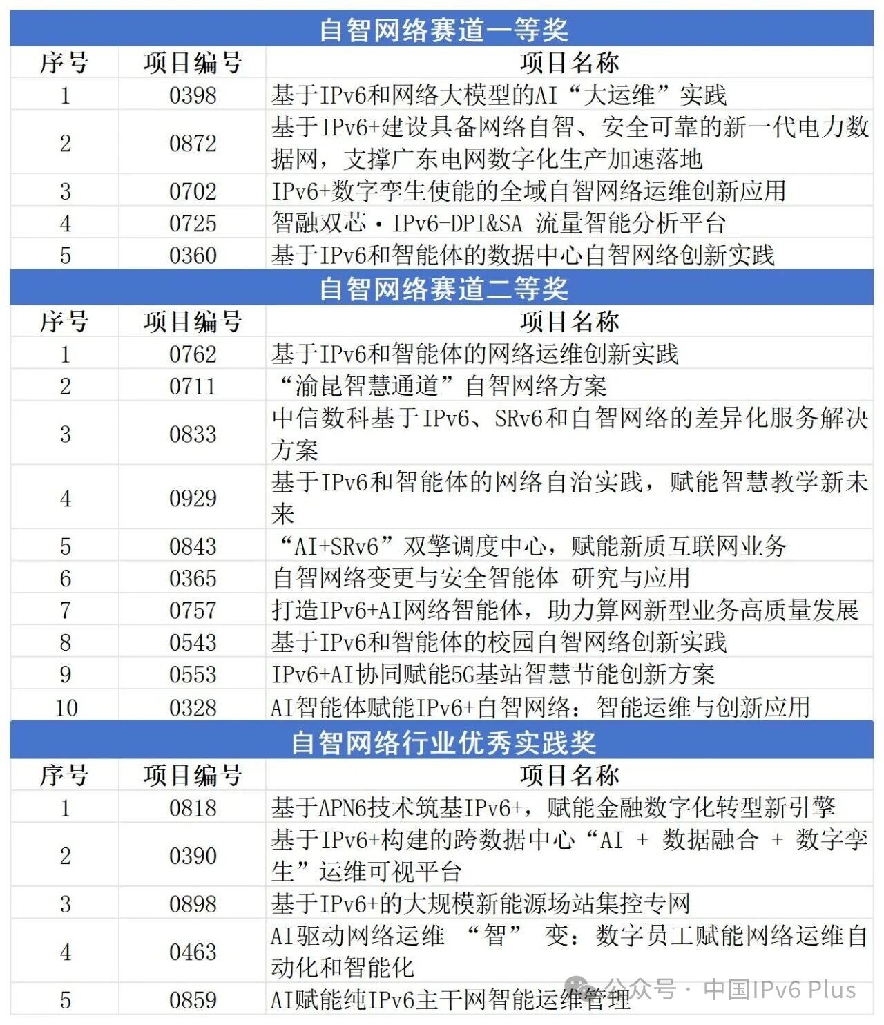 2025年11月30日,由中国信息通信研究院主办的第三届“IPv6技术应用创新大赛”自智网络赛道决赛在北京成功举办。20个参赛项目入围决赛,经过专家组严格评审与打分,最终评出一等奖5名、二等奖15名,为鼓励IPv6与自智网络技术在各行业的融合应用,另评出“自智网络行业优秀实践奖”5名,获奖名单如下。