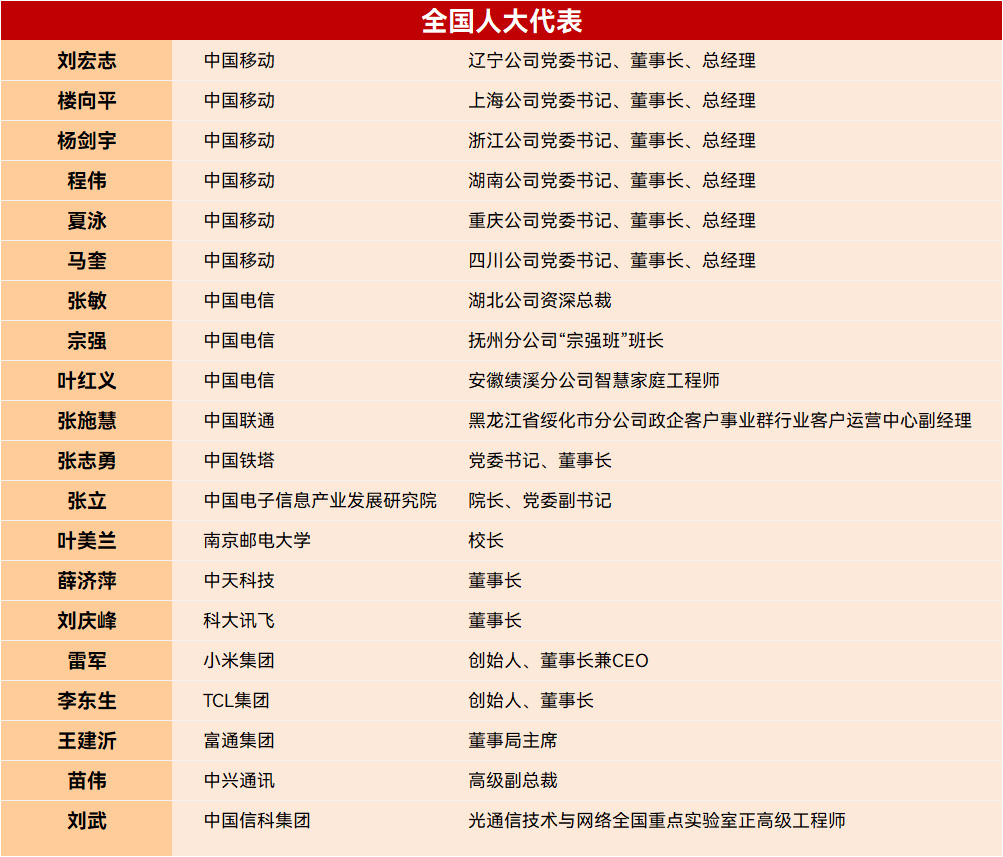 3月4日至11日,2026年全国两会将在北京正式召开。作为“十五五”开局之年,本次两会不仅是年度政治盛会,更是擘画未来五年发展蓝图的关键会议。今年参加两会的信息通信业代表委员共31人,包括20位全国人大代表和11位全国政协委员。